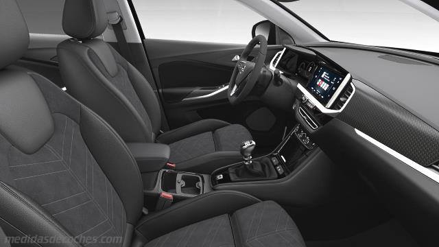 Espacio interior de 5 plazas.Con el diseño "Opel Compass" basado en los principios del pliegue central, el Grandland 2025 es más grande es sus tres dimensiones. El Opel Grandland tiene una longitud de 4650 mm, altura de 1661 mm, anchura de 1905 mm sin los espejos retrovisores exteriores y un peso de 1675-2207 kg según motorización. Por su tamaño, características y altura libre al suelo, clasificamos el Opel Grandland en la categoría de SUV medianos. Este nuevo modelo destaca por ser 173 mm más largo respecto a las medidas del Opel Grandland 2022.